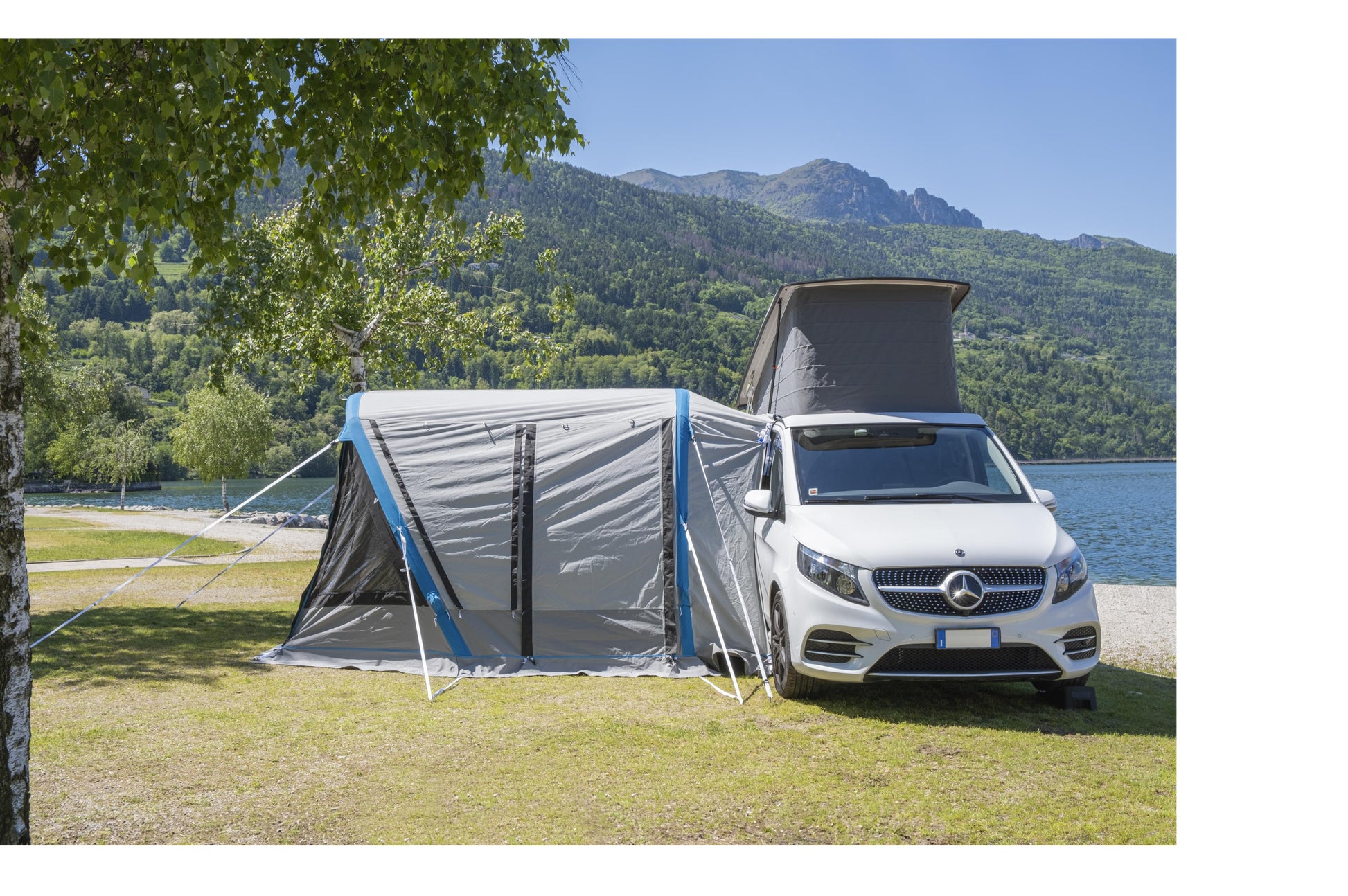 • Hohe UV-Beständigkeit, großer Vordereingang als Sonnendach nutzbar, abnehmbare getönte Scheiben mit Verdunkelung, Seiteneinstieg als Sonnendach konfigurierbar, getönte Seitenfenster mit Moskitonetz und Jalousien.
