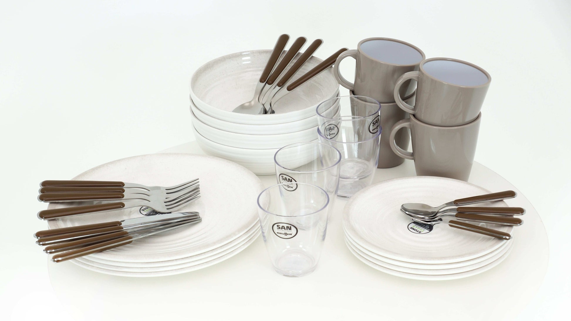 Tauchen Sie ein in die Welt des stilvollen und funktionalen Essens mit unserem exquisiten 36-teiligen Geschirr- und Besteckset aus neu entwickeltem Melamin/Mineralgemisch. Dieses Set vereint Eleganz mit Leistung und bietet eine Reihe herausragender Eigenschaften für ein wahres Genusserlebnis.