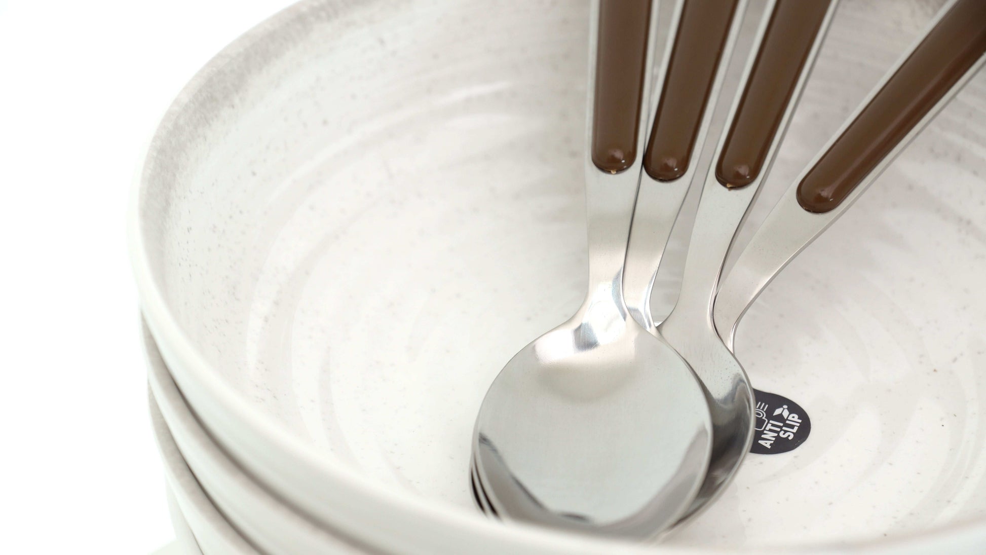 Die harte Oberfläche garantiert außergewöhnliche Langlebigkeit und Dimensionsstabilität, mit dem Glanz von Porzellan und einem angenehmen Griff. Lebensmittelecht, hygienisch und leicht zu reinigen, bietet es maximale Sicherheit und Bequemlichkeit. Spülmaschinenfest und äußerst robust, perfekt für jeden Anlass von eleganten Abendessen bis zu entspannten Picknicks im Freien.