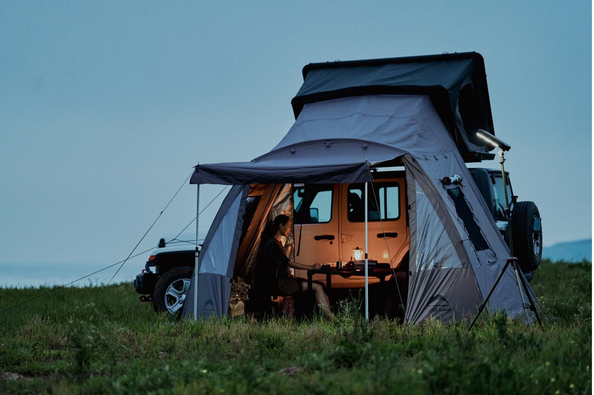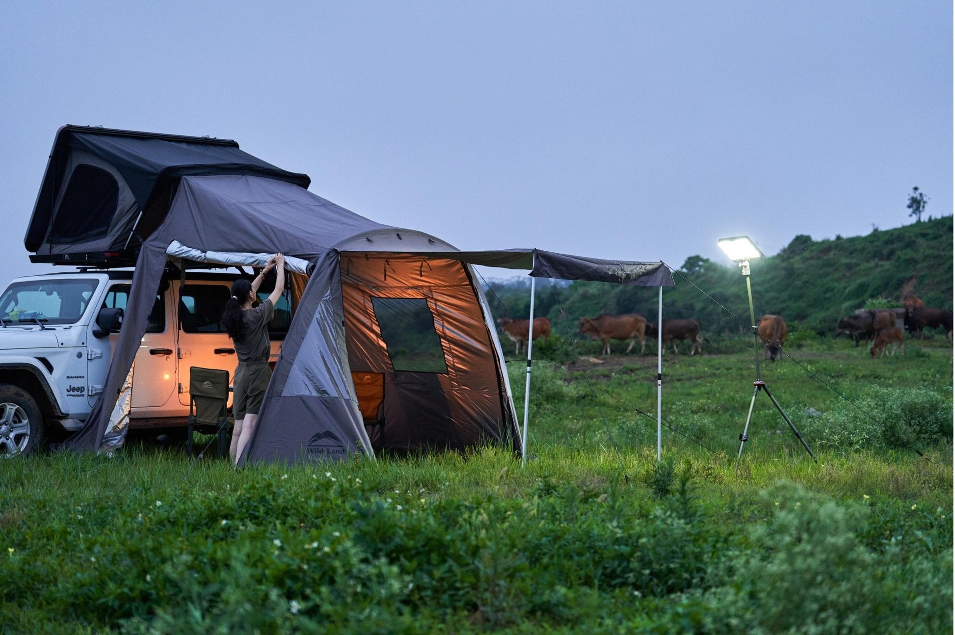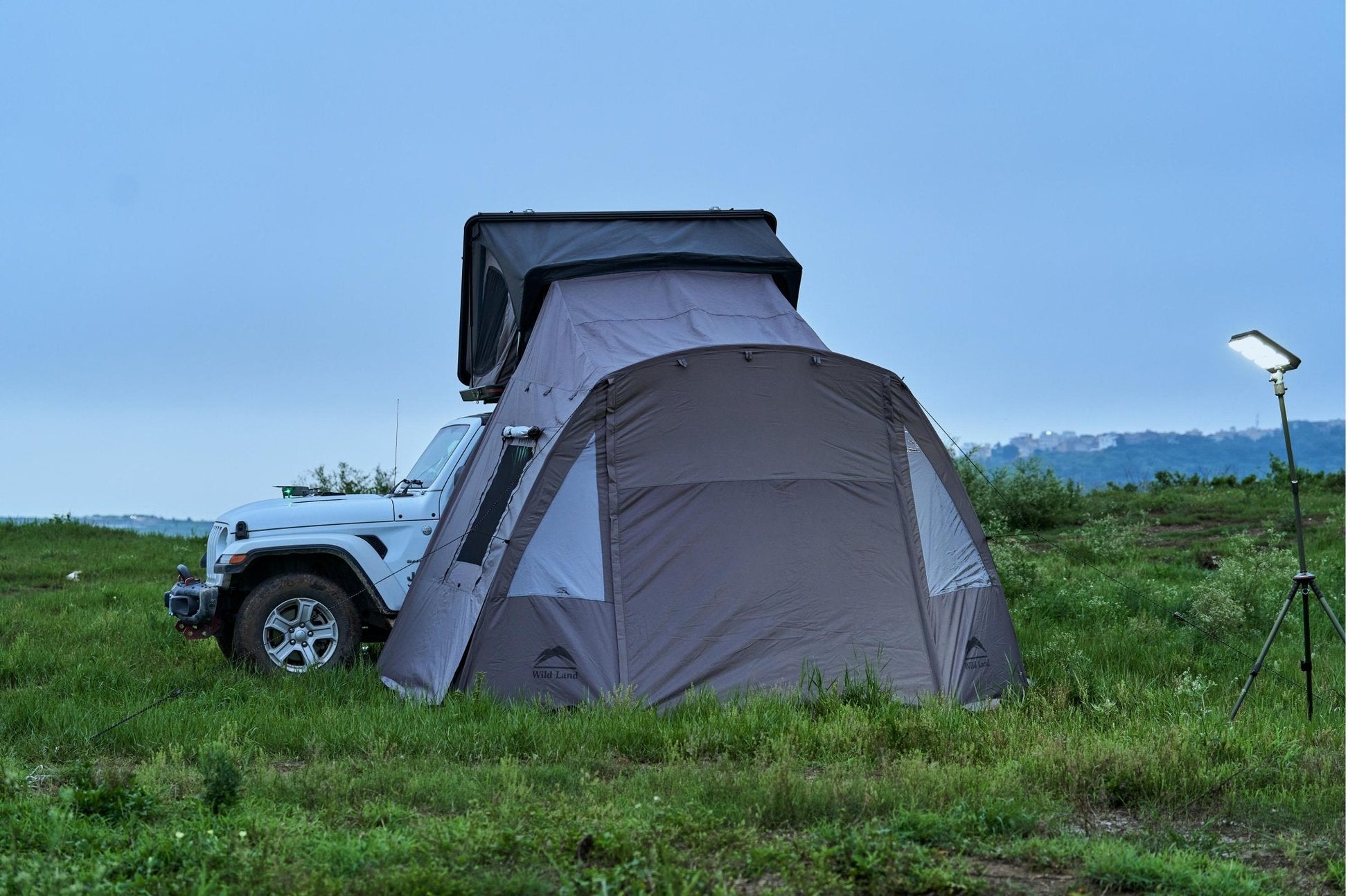 Das Wild Land Annex A ist ein einfach aufbaubares Vorzelt für ihr Autodachzelt Wild Cruiser 160. Es kann mit der Wild Land Dachzelttraufe kombiniert werden, um zusätzlichen Lebensraum für Outdoor-Camping zu schaffen. Die silberne Beschichtung sorgt für eine hohe UV-Beständigkeit. Das robuste 210D Rip-Stop-Gewebe macht es stabil und langlebig. Camping-Enthusiasten, Overlander, Wanderer und erfahrene Off-Roader wissen, wie komfortabel und wichtig ein zusätzlicher Raum in der freien Natur sein kann. Dieser Anbau ist riesig und bietet nicht nur Platz zum Umziehen oder zum Verstauen von Taschen und anderer Ausrüstung, sondern wird auch zum Wohnzimmer. Stellen Sie einfach Ihr Zelt auf, befestigen Sie das Vorzelt, und schon haben Sie einen riesigen Wohnbereich, in dem Sie sich hinsetzen, essen, etwas trinken oder einfach die Aussicht genießen können, während Sie vor der brennenden Sonne oder dem strömenden Regen geschützt sind. Wenn Sie drinnen sitzen, werden Sie spüren, wie schön und großartig Camping sein kann. Es bietet nicht nur einen persönlichen Schutz, sondern ist auch ein zusätzlicher Raum für Ihre Campingfreizeit. Im wahrsten Sinne des Wortes, einer der besten Vorzelte auf dem Markt, ein einzigartiges Produkt, das Wild Land wieder einmal charakterisiert und von den anderen unterscheidet!
