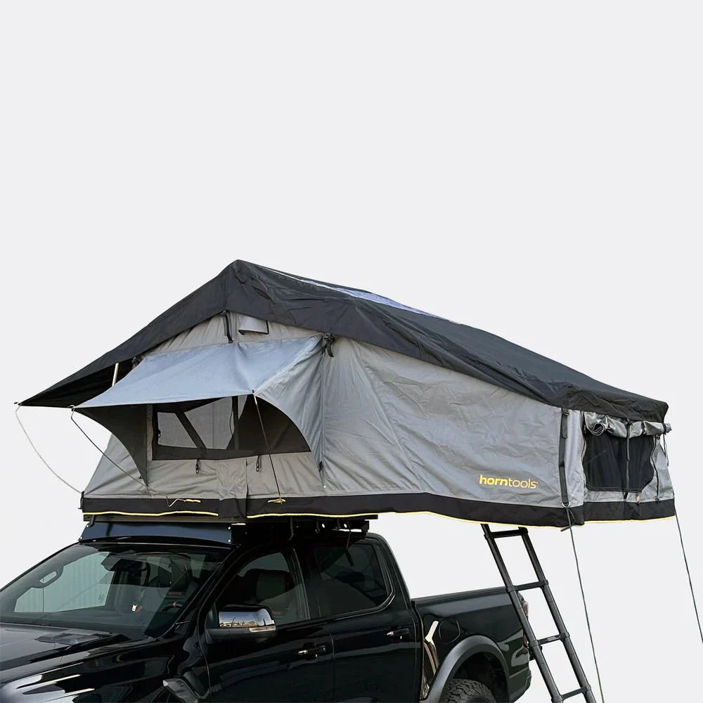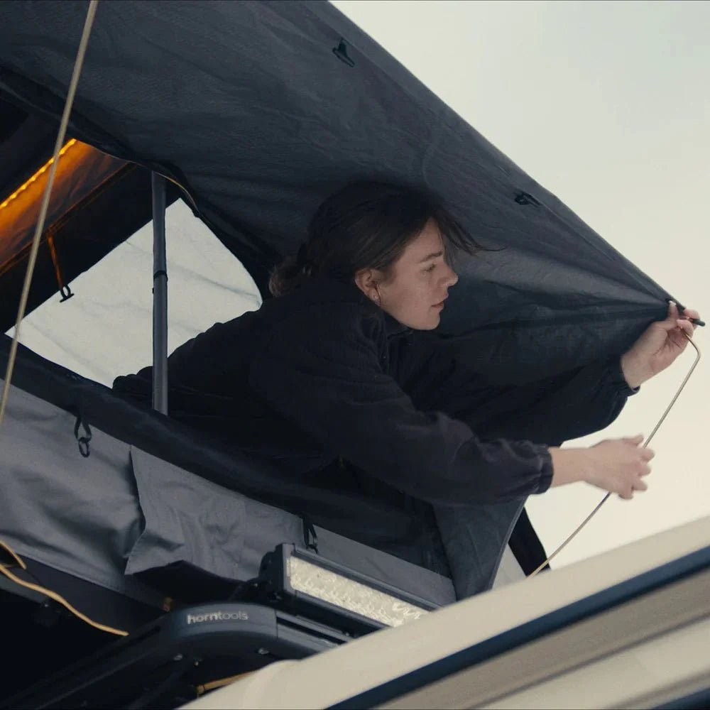 Das horntools Dachzelt Elements vereint langjährige Erfahrung im Bereich Dachzelt und bietet alles, was auf einem Overlanding & Camping Abenteuer benötigt wird. Es kommt als eines der fortschrittlichsten Dachzelte mit einigen spannenden neuen Features auf dem Markt.
