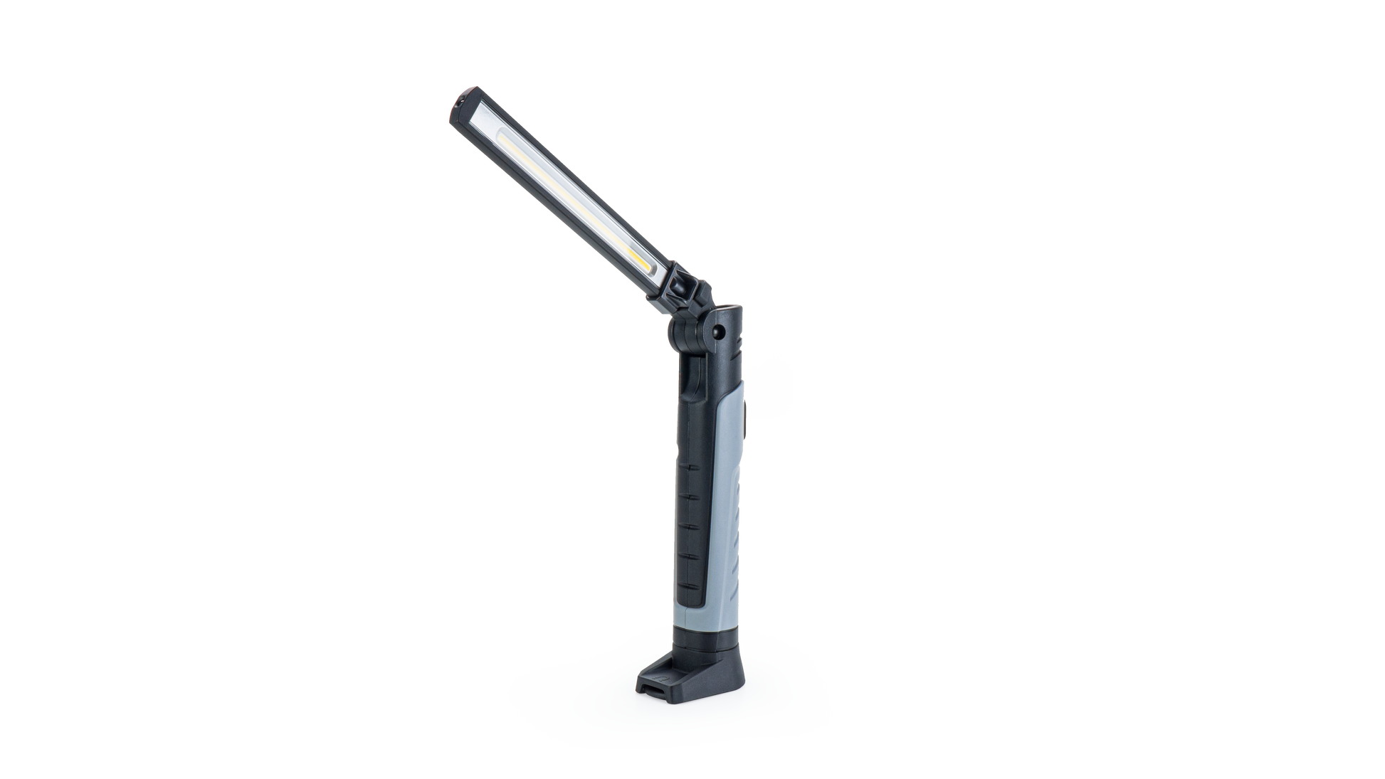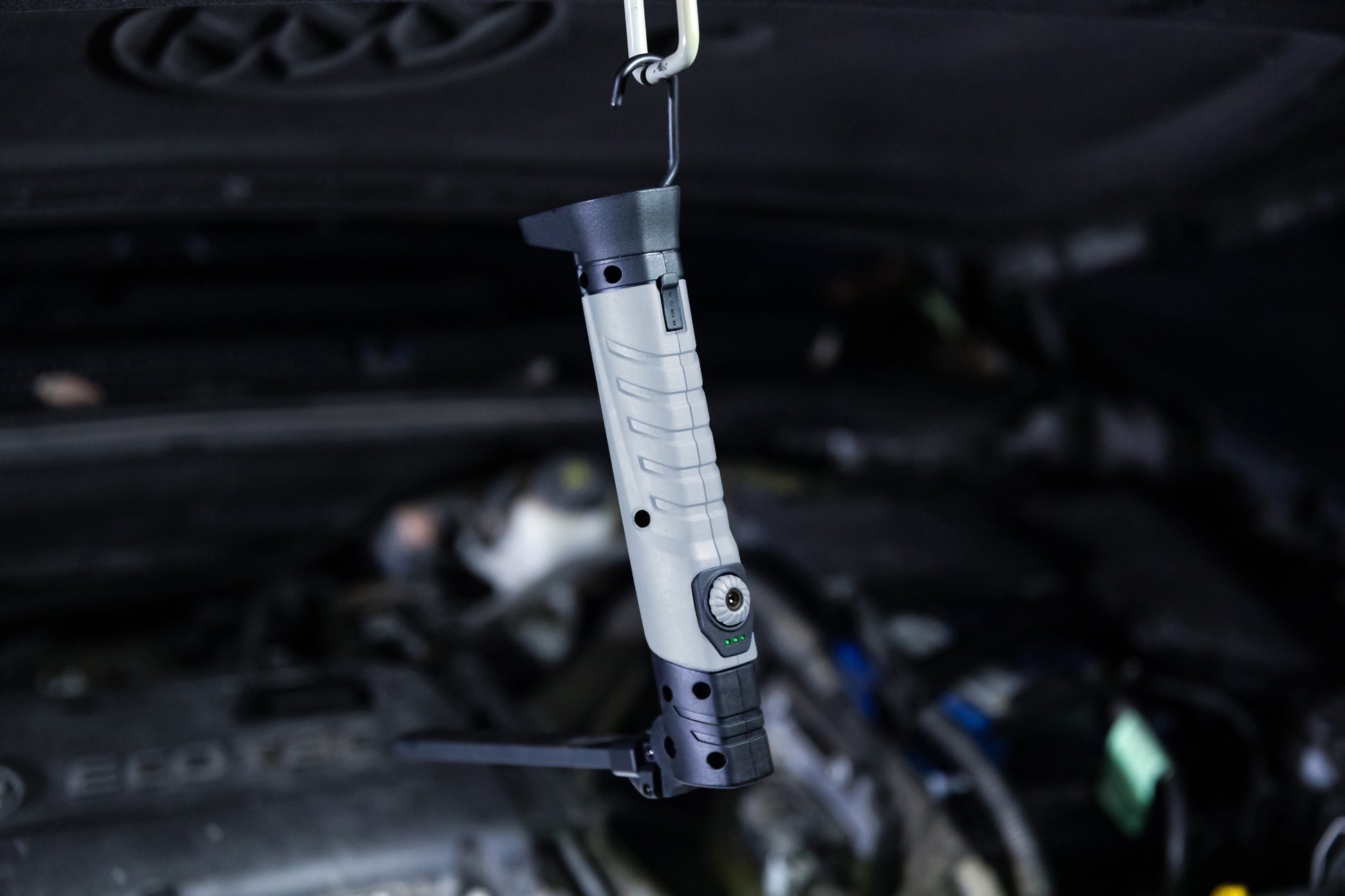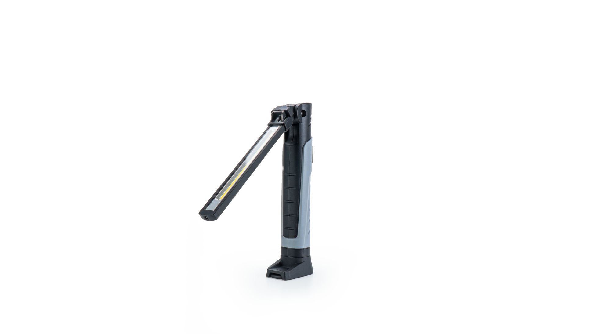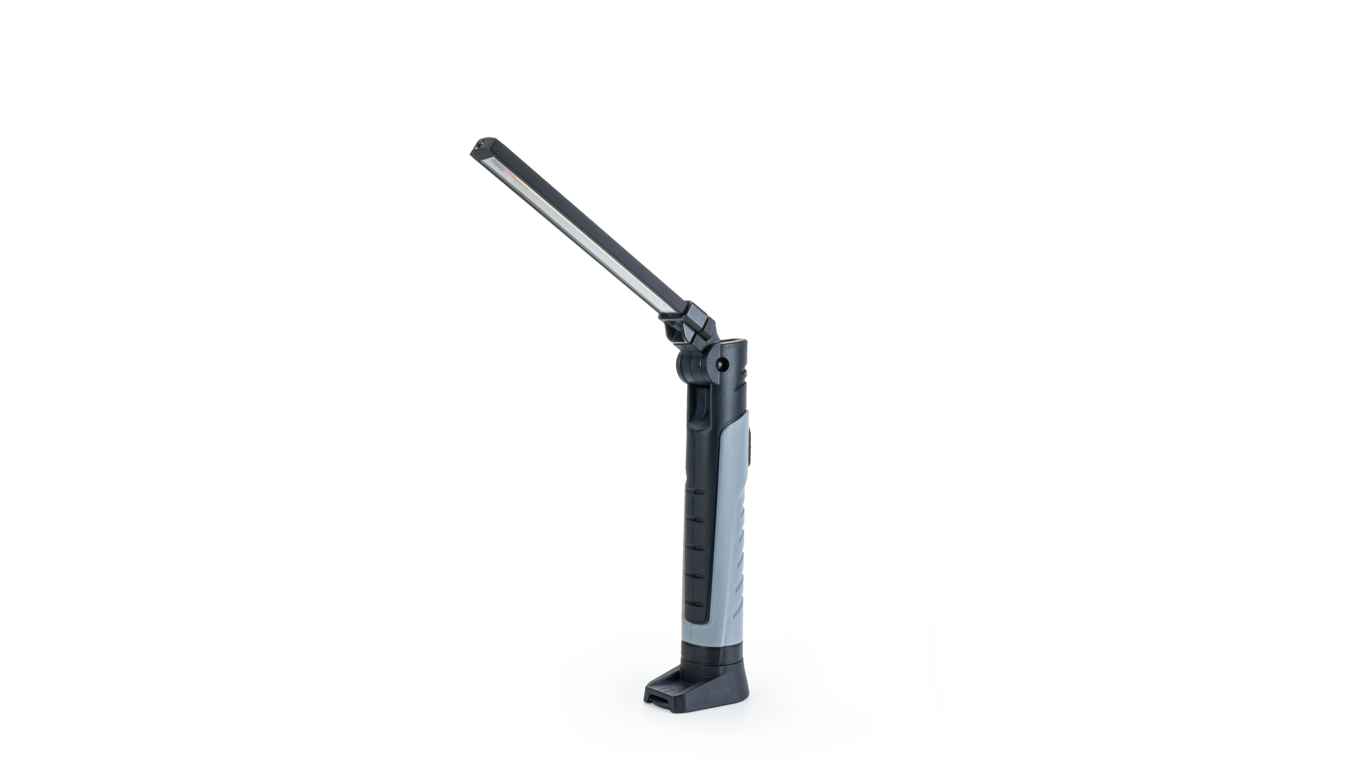Professional and versatile inspection lamp. The I2r is an extremely versatile inspection lamp that illuminates even the tightest areas well. With its flexible design, the light can be turned in any direction. This inspection lamp can be set up, hung with the integrated hook or stuck to any magnetic surface with the magnet in the base. The main light on the narrow arm provides a very wide floodlight and is able to illuminate large areas. The I2r also has a skylight at the end of the arm to illuminate the tightest gaps. With 700 lumens from the main light and 120 lumens from the skylight, there is enough light available.