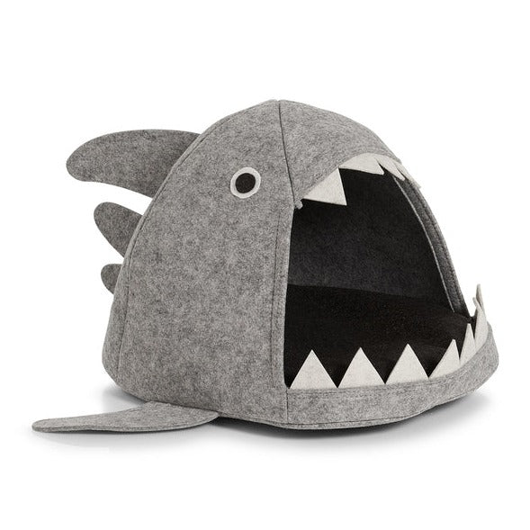 This trendy felt cave is the ideal retreat for cats and small dog breeds. The shark is a great eye-catcher in your living room and is also often used for playing and passing the time. A cuddly polyester cushion enriches the comfortable place to lie down. The shape-retaining cave can be folded up to save space.