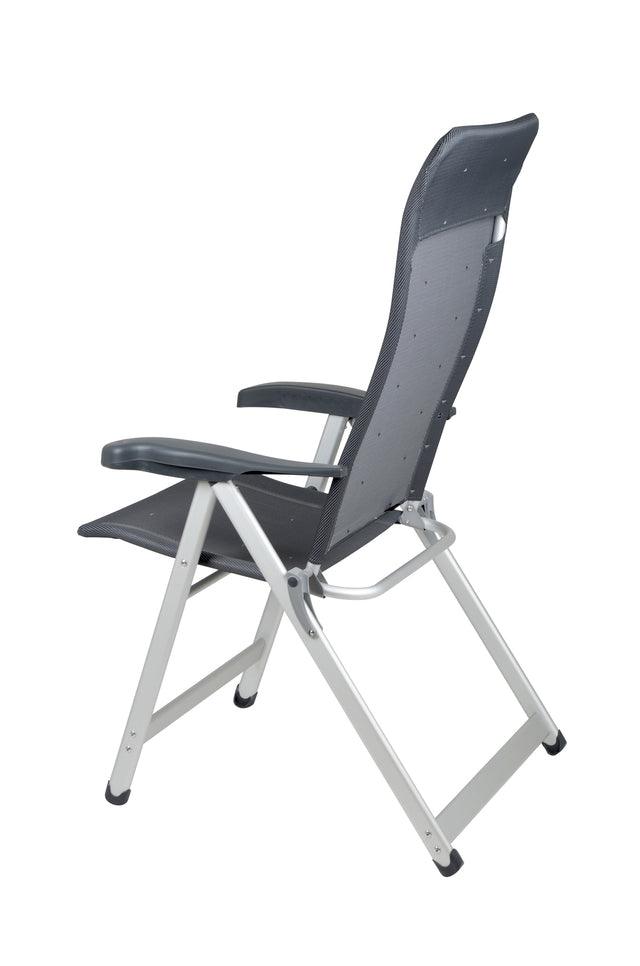 Dieser einzigartige Klappstuhl ist einer der wenigen extrem platzsparenden, verstellbaren Klappstühle auf dem Markt. Er bietet dank der 7-fach verstellbaren Rückenlehne maximalen Komfort. Sowohl die Rückenlehne als auch die Armlehnen sind ergonomisch geformt. Der Stuhl ist mit einem eloxierten H-Rahmen ausgestattet, der extra Stabilität und Sicherheit gewährleistet. Der Stuhl hat eine (51 cm) breite und (43 cm) tiefe Sitzfläche. Die Sitzhöhe beträgt 49 cm und die Rückenlehne ist 81 cm lang. Der Stuhl ist durch seine einzigartige Konstruktion sehr kompakt und dadurch einfach zu transportieren (B x H x T: 67 x 113 x 7 cm). Max. Belastbarkeit: 140 kg. Von ANWB und einer Verbraucherschutzgruppe als der Beste getestet.