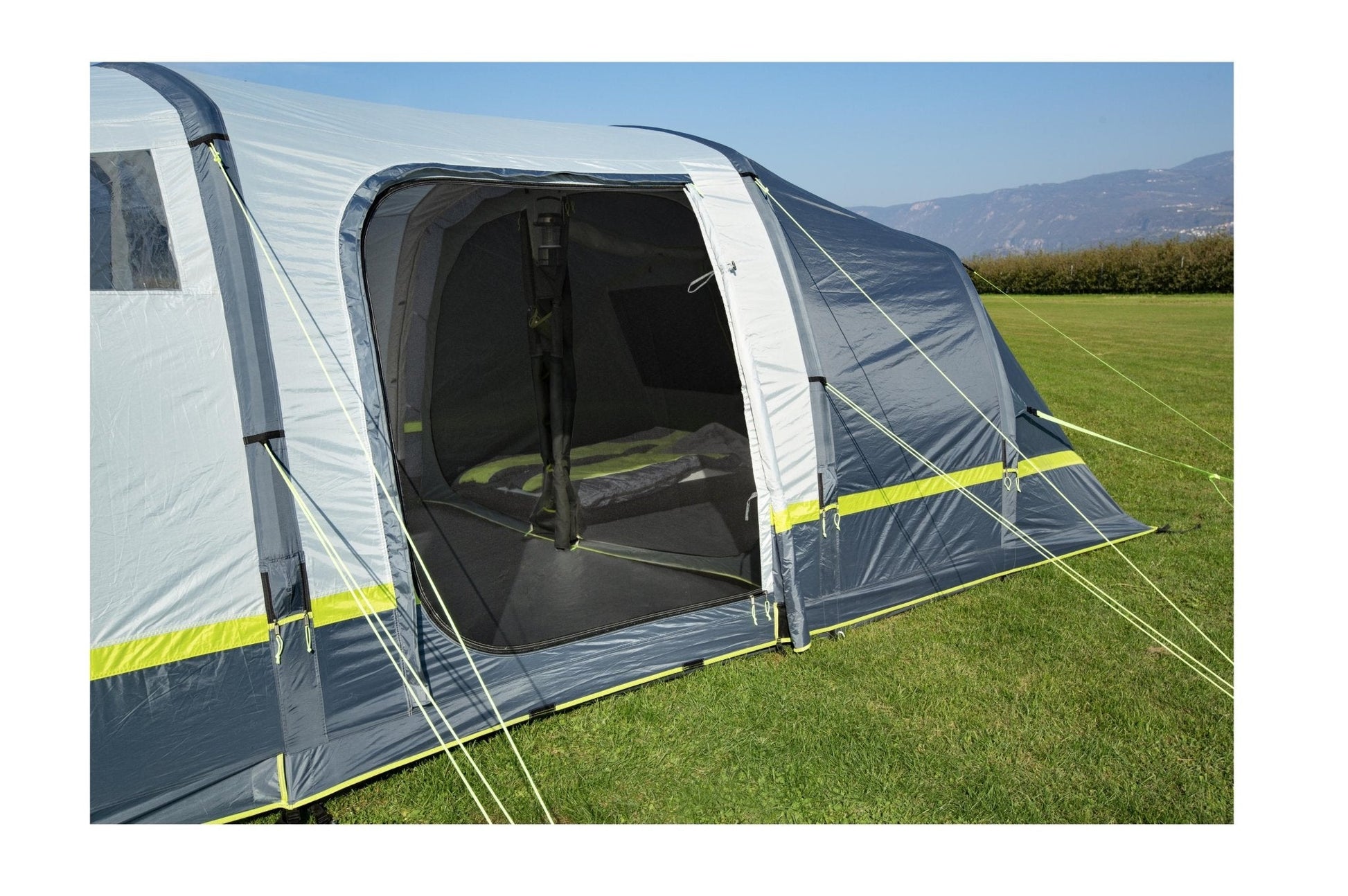 Das aufblasbare Familienzelt A.I.R. Tech Paraiso kombiniert auf perfekte Weise modernes Design, Konstruktionstechnik und Allround-Funktionalität. Durch seine großen Lüftungsöffnungen und die großen Panoramafenster, die bis zum Boden reichen, bietet es viel Platz für die Bewohner und zudem viel Luft und Licht im Innenraum. Viele tolle Funktionsdetails machen dieses leicht aufzubauende Luftzelt zu einem perfekten Begleiter für einen unbekümmerten und komfortablen Familienurlaub.