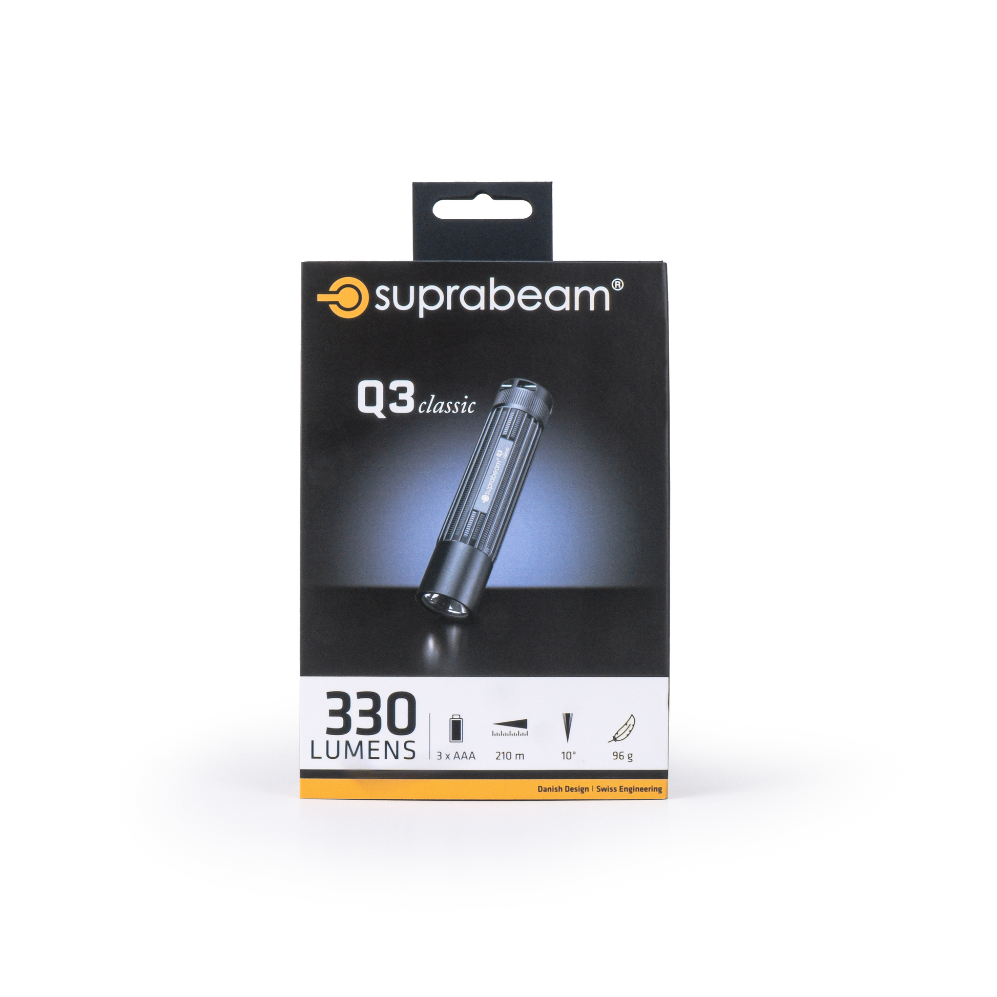 With one power level and fixed spotlight, the compact and powerful Q3classic is the ideal companion for the professional user or for the enthusiast who needs a flashlight with excellent and powerful performance with just one click.