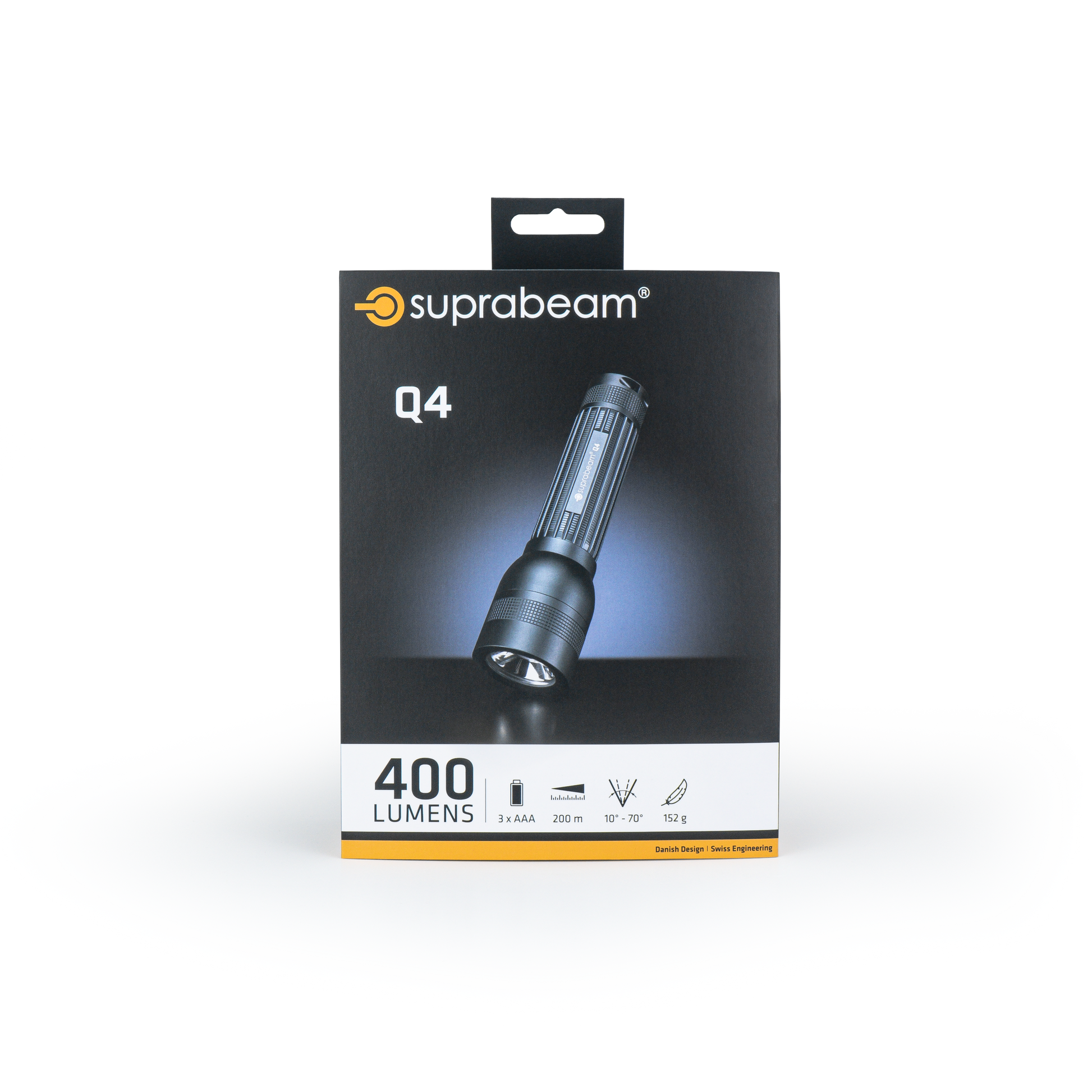 The Q4 is a powerful, compact flashlight with advanced electronics. With its 400 lumens, this flashlight is perfect for almost any use.