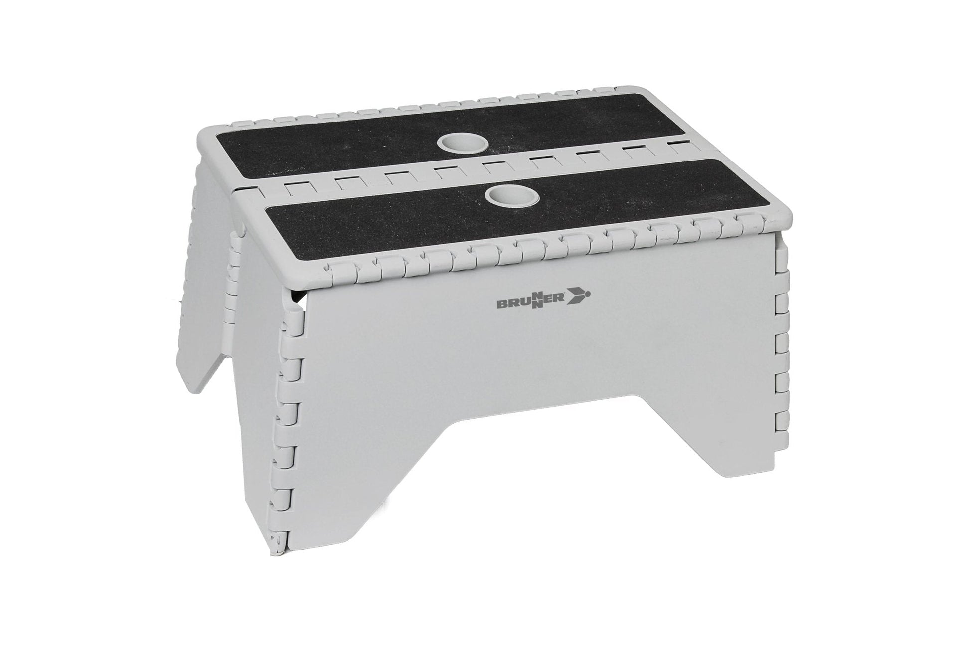 Kompakte Klapptrittstufe für Caravaning, Camping und Haushalt. Robuste, strapazierfähige Kunststoffkonstruktion. Mit rutschfester Trittfläche. Einfach zu falten und verstauen.