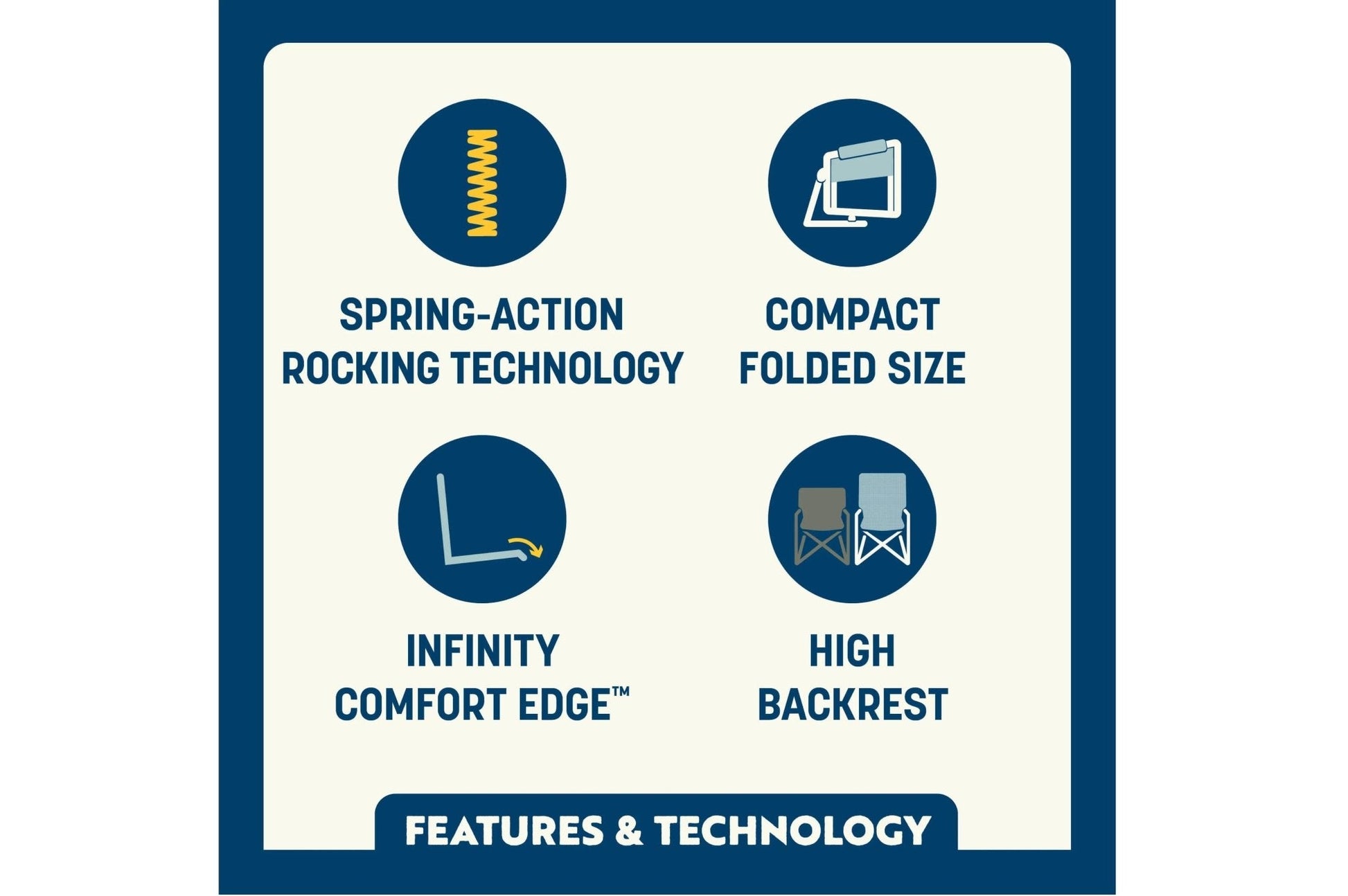 Der Stowaway Rocker von GCI Outdoor ist die ideale Lösung für alle, die auch unterwegs nicht auf Komfort verzichten möchten. Mit seinem innovativen, platzsparenden Design ist er 35 % kompakter als herkömmliche Modelle und lässt sich dank der Eazy-Fold-Technologie schnell und einfach zusammenklappen. Die patentierte Spring-Action Rocker Technology™ sorgt für sanftes Schaukeln auf nahezu jedem Untergrund, während der Infinity Comfort Edge™ Sitz und die gepolsterten Armlehnen höchsten Sitzkomfort garantieren. Ein robuster, pulverbeschichteter Stahlrahmen und die atmungsaktive Netzlehne machen den Stuhl besonders langlebig und angenehm in der Nutzung. Praktische Extras wie ein integrierter Tragegriff, eine wechselbare Seitentasche mit XL-Getränkehalter und ein separates Handyfach runden das durchdachte Design ab. Mit einer Tragkraft von bis zu 113 kg ist der Stowaway Rocker der perfekte Begleiter für Camping, Festivals oder entspannte Stunden im Garten.