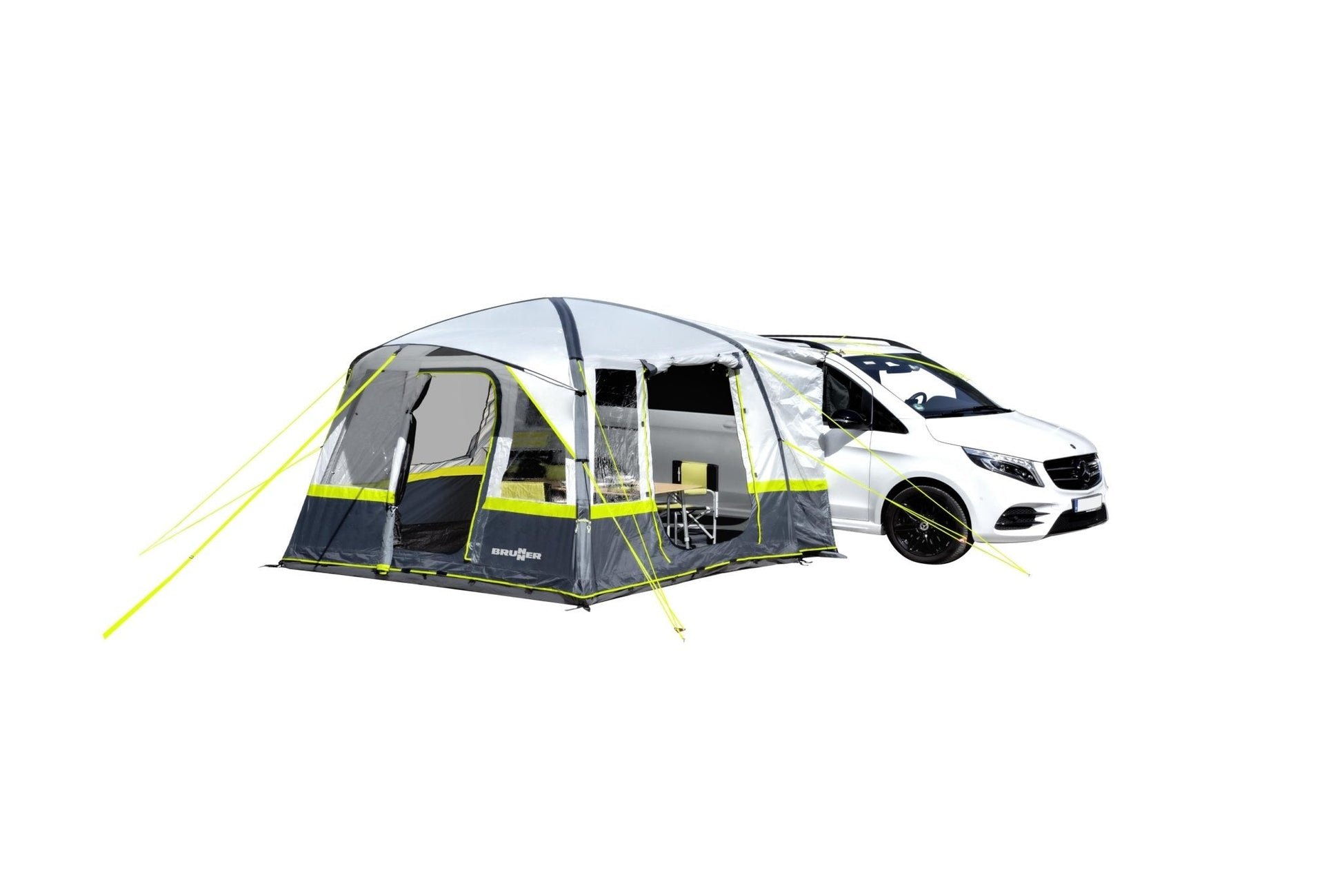 Willkommen zur neuesten Innovation in unserer A.I.R. Tech Zelt- und Vorzeltkollektion, dem Trouper 2.0 Busvorzelt. Dieses geräumige Mobilzelt setzt mit seinem neuen Luftrahmen Maßstäbe für Raumausnutzung und Flexibilität. Die freistehende Konstruktion und die innovative Crossbeam-Technologie garantieren ausgezeichnete Stabilität.