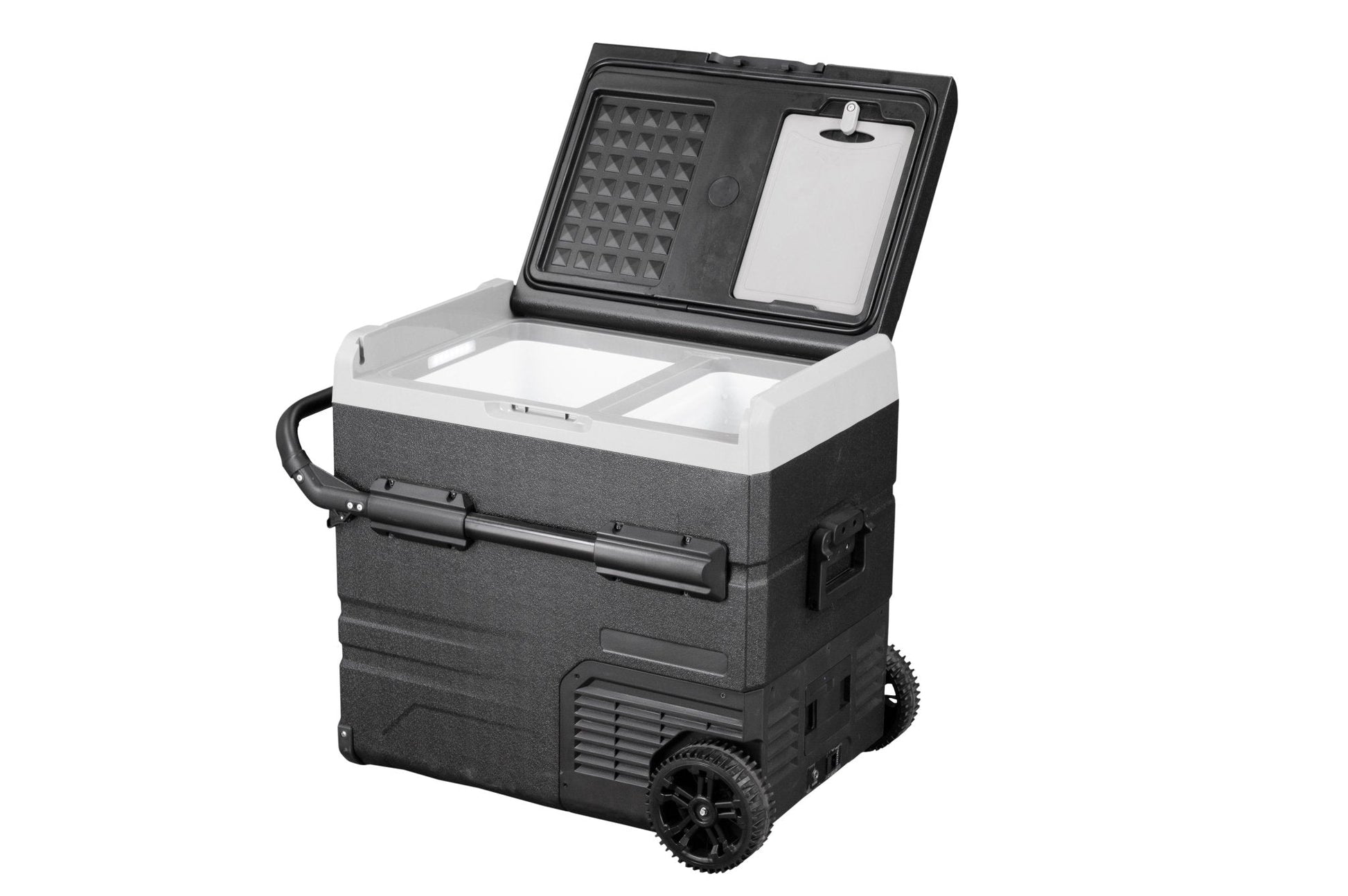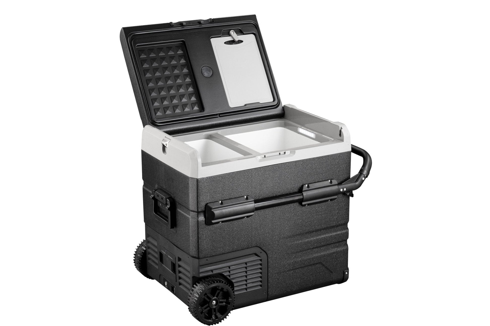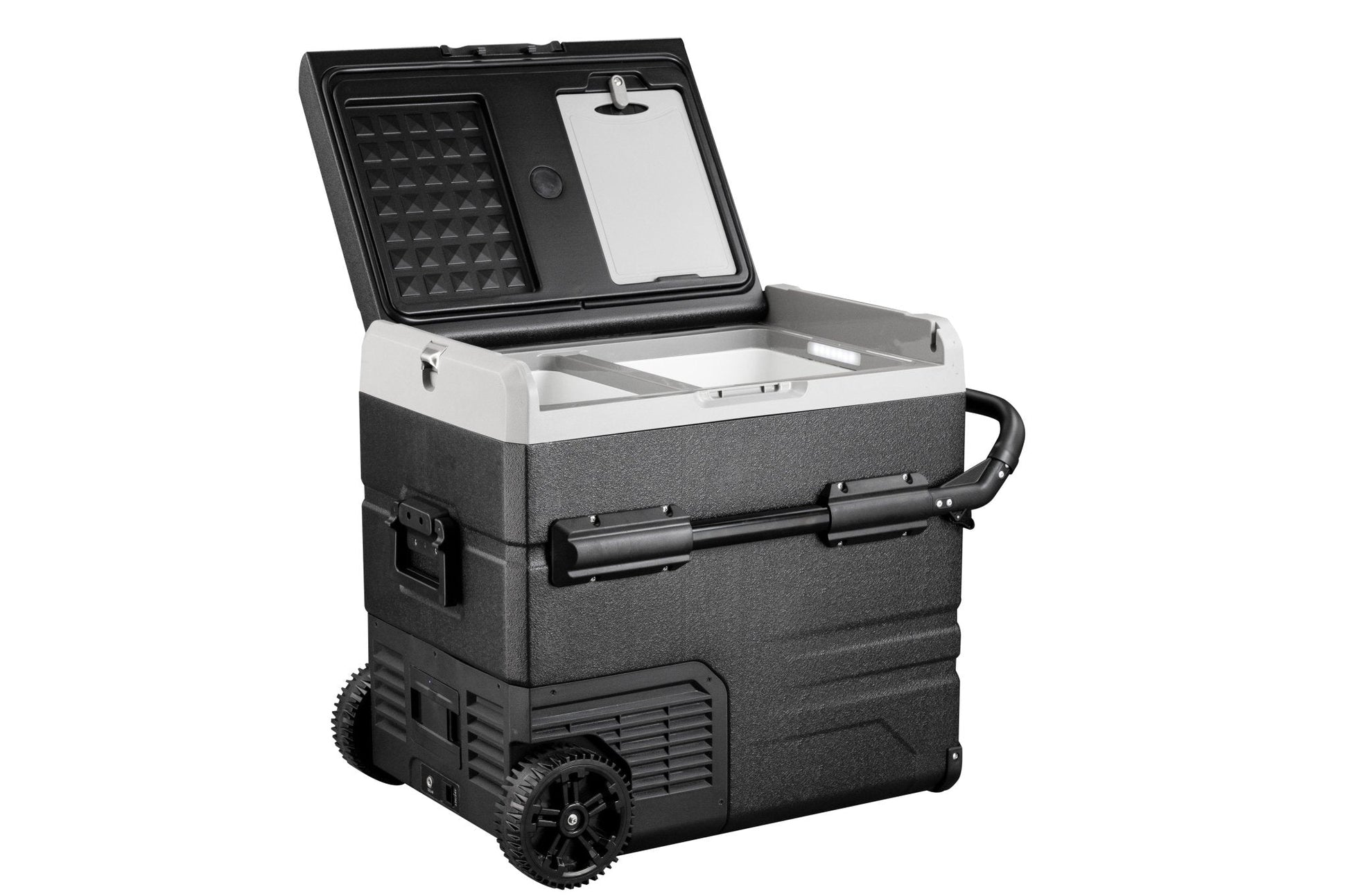 Der tragbare Autokühlschrank TWW55 von Annjuk by Alpicool mit Gefrierfach kommt mit einem Fassungsvermögen von 55 l und eignet sich für die Aufbewahrung von Lebensmitteln und anderen Gegenständen. Der Kühler kann mit dem mitgelieferten und abnehmbaren Akku oder am Strom betrieben werden. Der Annjuk by Alpicool TWW55 Auto-Kühlschrank kühlt dank der modernen Kühltechnologie in kürzester Zeit auf 0 °C ab. In allen Kühlern der T-Serie der Annjuk by Alpicool Auto-Kühlschränke wurde die moderne LG-Kühltechnologie (hocheffizientes DC-Verdichter- und Umwandlungsmodul) verwendet. Mit der Gefrierfunktion kann die Kühlbox sogar auf eisige -20 °C abgekühlt werden (basierend auf 25 °C Raumtemperatur). Die Box ist in zwei Bereiche unterteilt, welche mit der Temperaturanzeige unterschiedlich eingestellt werden können. Zudem kommen die Komponenten mit einem Gittereinsatz. Im Inneren des Kühlers sind LED Lichter vorhanden, die sich automatisch einschalten, sobald der Deckel geöffnet wird. Für eine effizientere Leistung sind die Kühlwände komplett isoliert. Der intelligente Batterieschutz verhindert, dass dem Fahrzeug die Batterie ausgeht. Die Kühlbox ist FCKW-frei und kommt mit einem DC12/24V oder AC 100~240V (mit entsprechendem Adapter) Stromanschluss. Transportrollen, ein klappbarer Handgriff auf der einen Seite sowie der Teleskophandgriff auf der anderen Seite erleichtern das Verschieben und Transportierten der Kühltruhe. Der TWW55 kommt mit integriertem Schneidebrett und Flaschenöffner und ist somit der perfekte Begleiter für Outdoorabenteuer, Campingtrips, Roadtrips oder Picknicks.