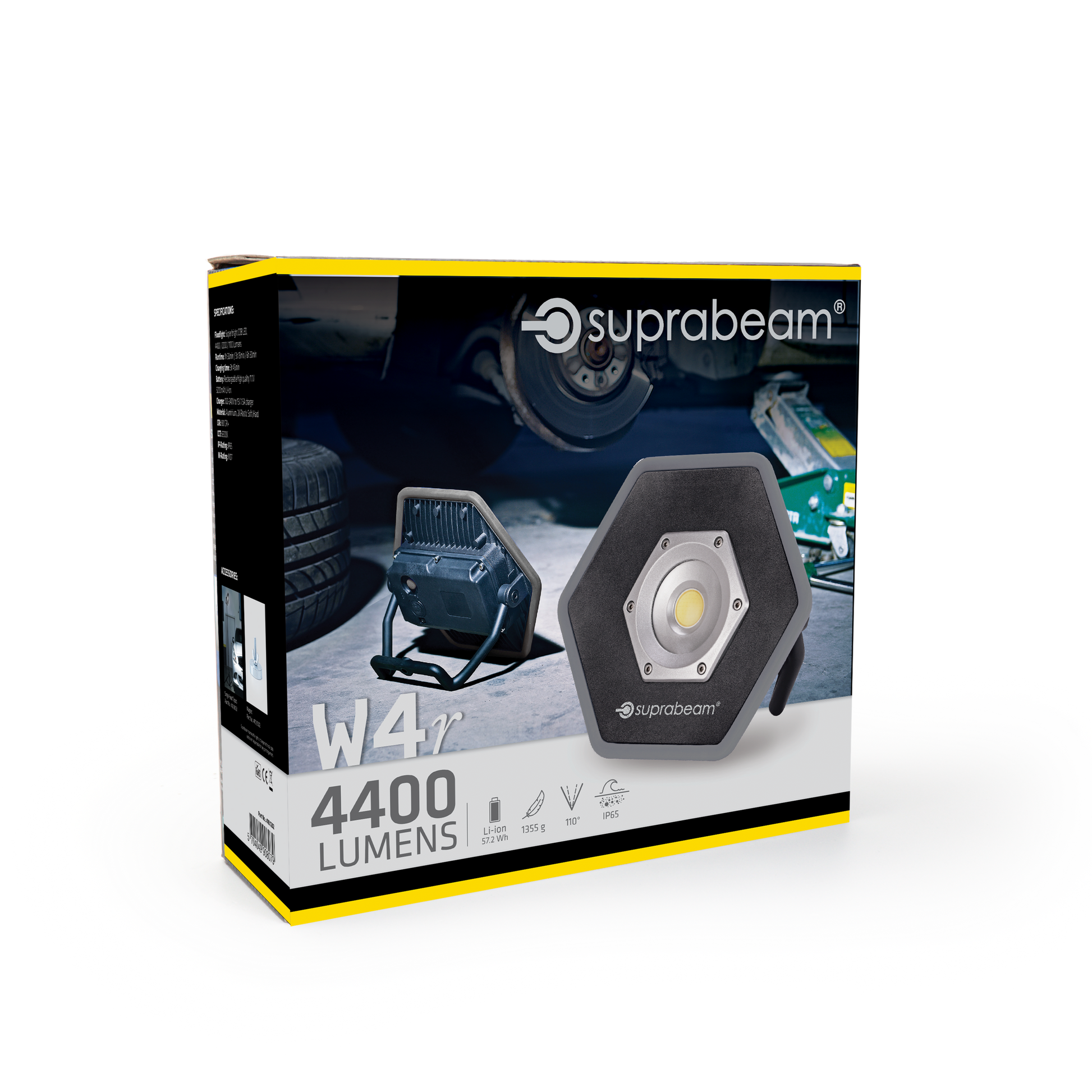 The W4r is a powerful, robust and versatile work light that can easily illuminate an entire wall. Made from aluminum and a particularly strong plastic composition, the W4r is designed for life on the construction site or in the workshop. The high quality of the materials and construction is noticeable. With the rubber edge, the W4r is protected from knocks that can occur during work. The flexible design allows the W2r to be illuminated in any direction and with the accessory magnet it can be attached to any magnetic surface. The 110 ° light angle makes it possible to illuminate a large area. The W2r can be used when plugged in, so it will illuminate for hours while preserving the battery.
