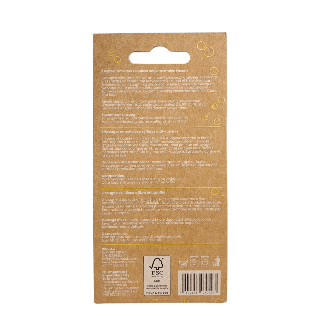 2 doppelt wirksame Schwämme aus Zellulose pflanzlichen Ursprungs und recyceltem Sisal & PET
