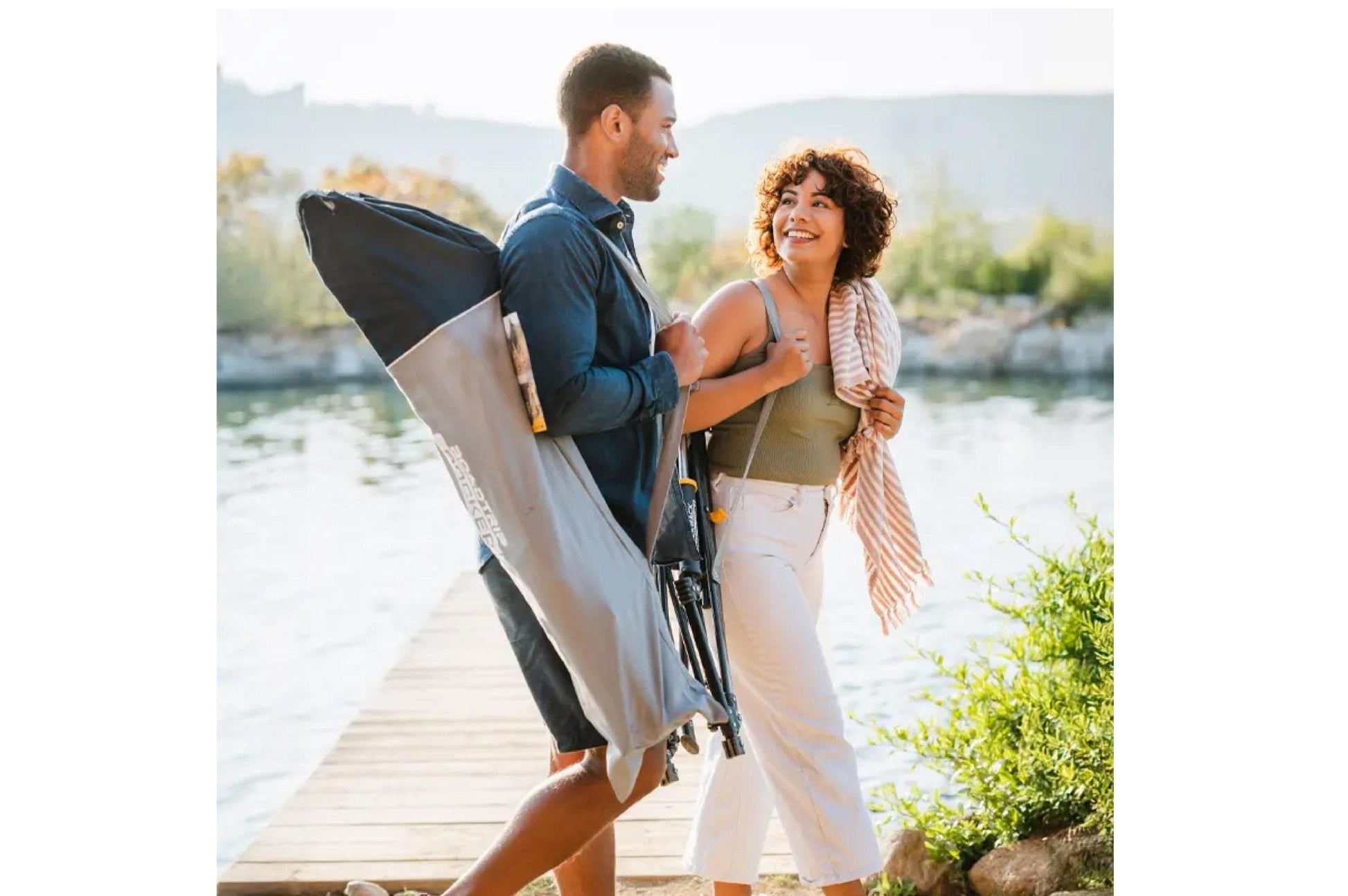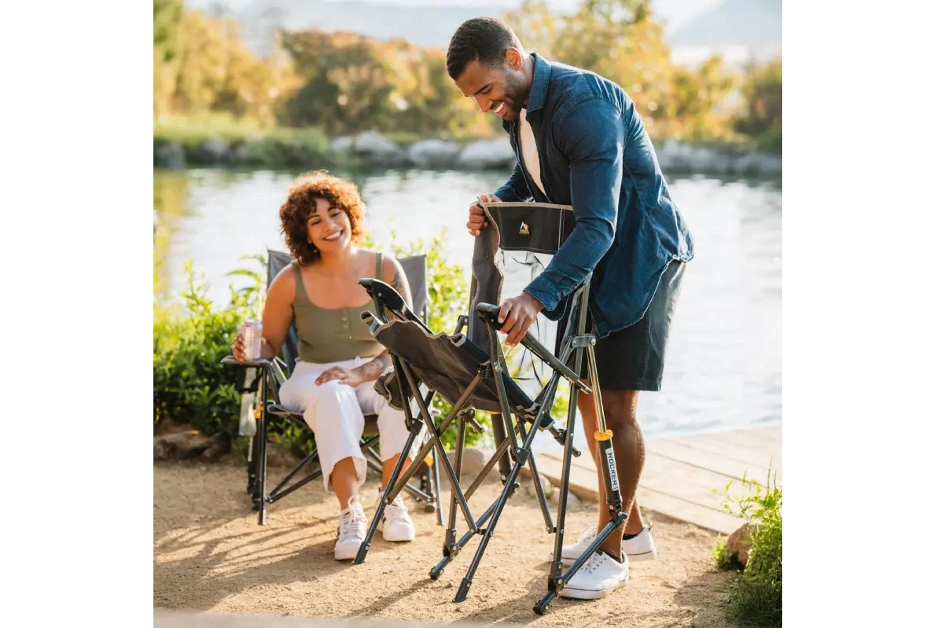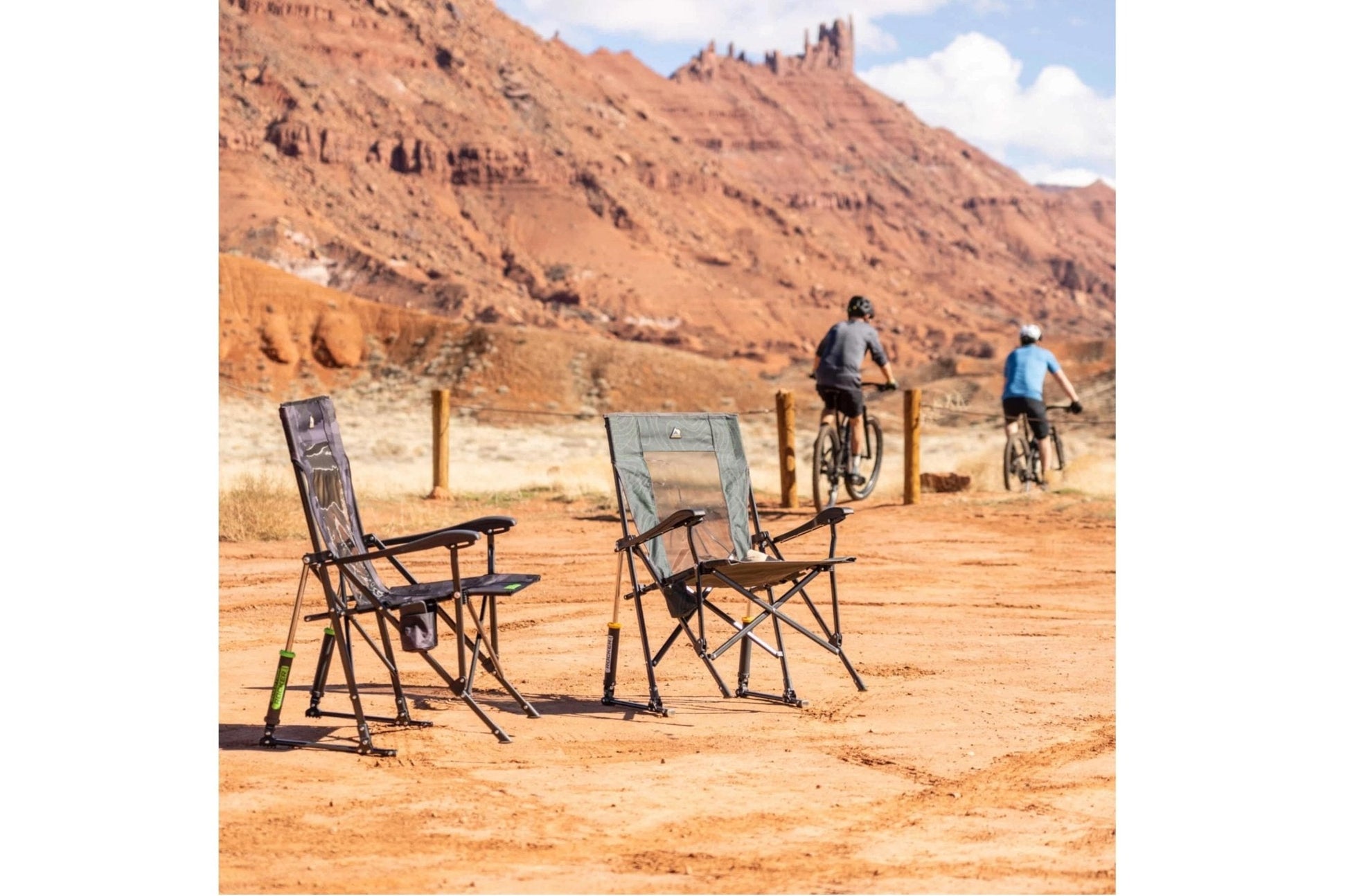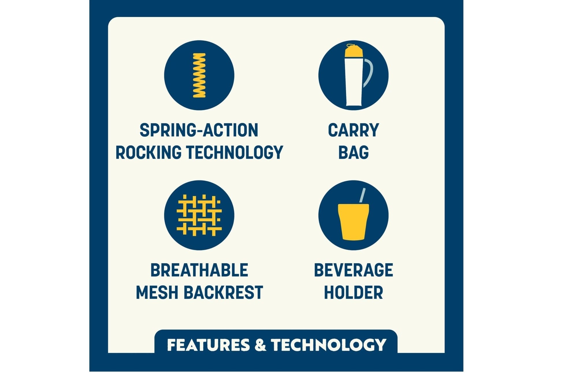 Schaukelstuhl für draußen: Der RoadTrip Rocker mit Faltfunktion. Du suchst nach einem Schaukelstuhl für draußen, der dir Komfort, Innovation und Mobilität bietet? Dann ist der RoadTrip Rocker genau der Richtige für dich. Der RoadTrip Rocker ist ein vollwertiger Schaukelstuhl, der sich mit einem Handgriff zusammenfalten und in einer Tragetasche verstauen lässt. So kannst du ihn überallhin mitnehmen, wo du entspannen möchtest. Ob im Garten, auf dem Campingplatz oder am See, der RoadTrip Rocker ist dein perfekter Begleiter. Er verfügt über die patentierte Spring-Action Rocking Technology™, die dir ein sanftes und angenehmes Schaukelerlebnis ermöglicht. Außerdem hat er solide und stützende Armlehnen und eine luftige Rückenlehne aus Mesh, die dir zusätzlichen Komfort bieten.