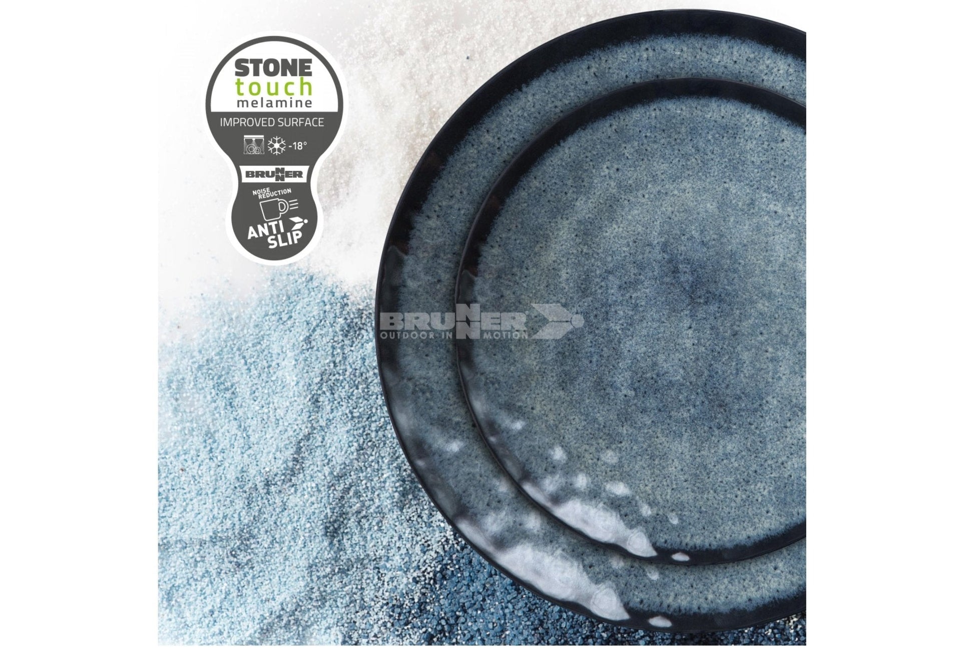 Erleben Sie luxuriöses Camping mit dem 8-teiligen Brunner Tête-à-Tête Venetian Geschirr-Set. Hergestellt aus dem innovativen STONEtouch® Material, vereint es die funktionellen Vorteile von Melamin und Mineralien mit der eleganten Optik und Haptik von Porzellan. Perfekt für zwei Personen, bietet dieses Set höchste Qualität und Komfort für Ihren Campingurlaub. Die Anti-Slip® Technologie und der Gummiring im Boden der Teile sorgen für Stabilität und reduzieren Klappergeräusche beim Transport. Genießen Sie stilvolles Essen in der Natur mit dem Brunner Tête-à-Tête Venetian Geschirr-Set. Produktdetails des Brunner Tête-à-Tête Venetian Geschirr-Sets Das Brunner Tête-à-Tête Venetian Geschirr-Set besteht aus hochwertigem STONEtouch® Material, einem Melamin/Mineralgemisch, das lebensmittelecht, BPA-frei, spülmaschinenfest und tiefkühlgeeignet ist. Dank der Anti-Slip® Technologie bieten die Geschirrteile einen sicheren Stand ohne Verrutschen.