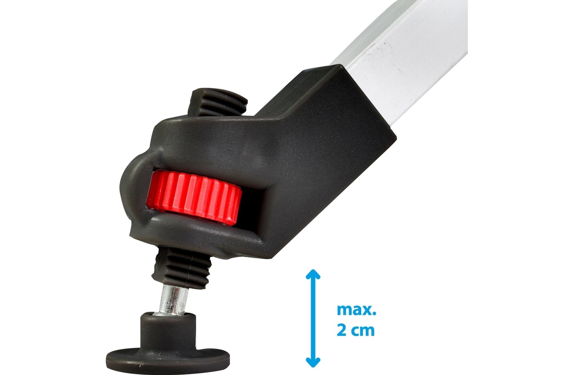 • Integrierte Extras – Wasserwaage, höhenverstellbares Bein, Netzablage