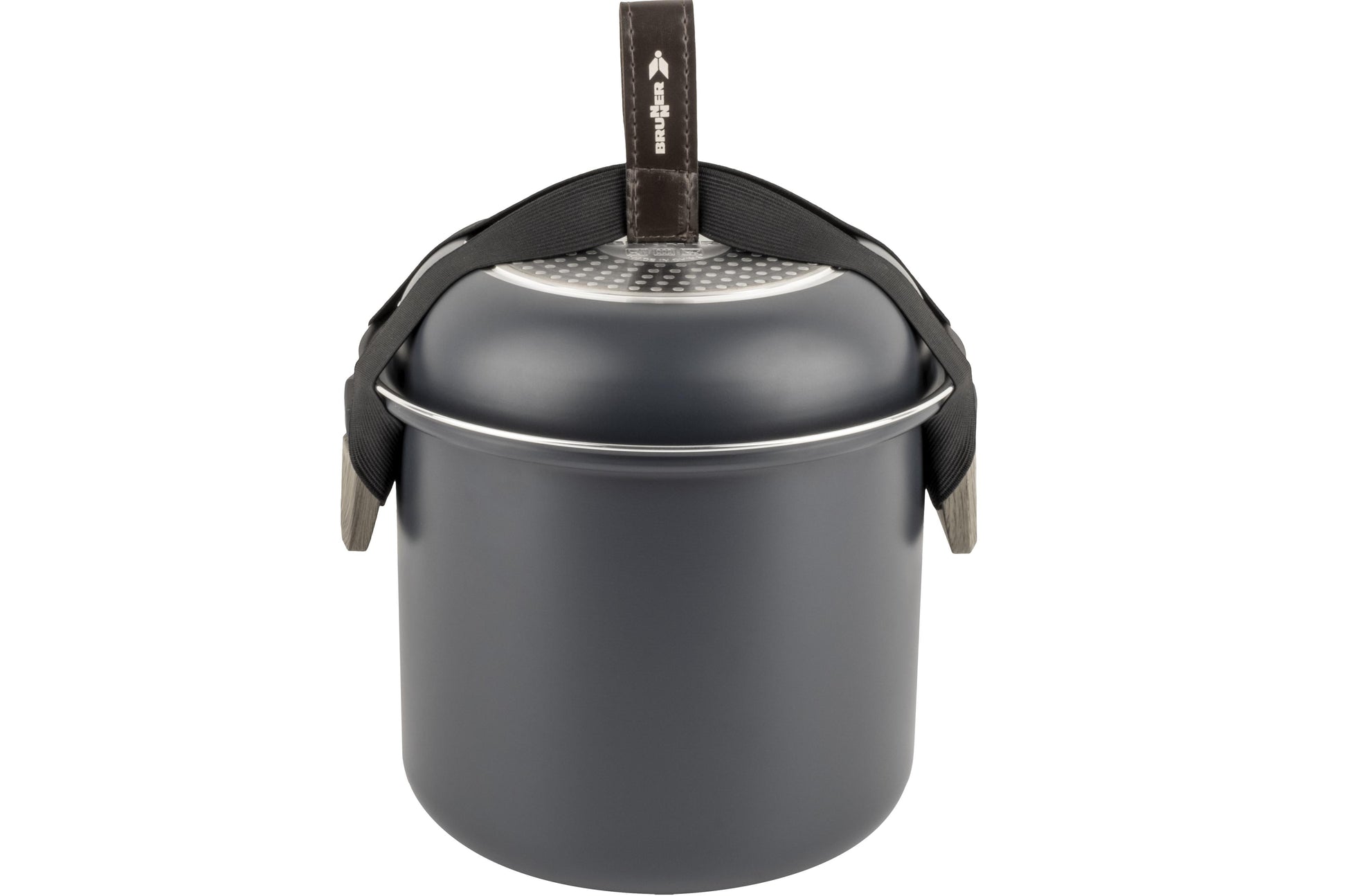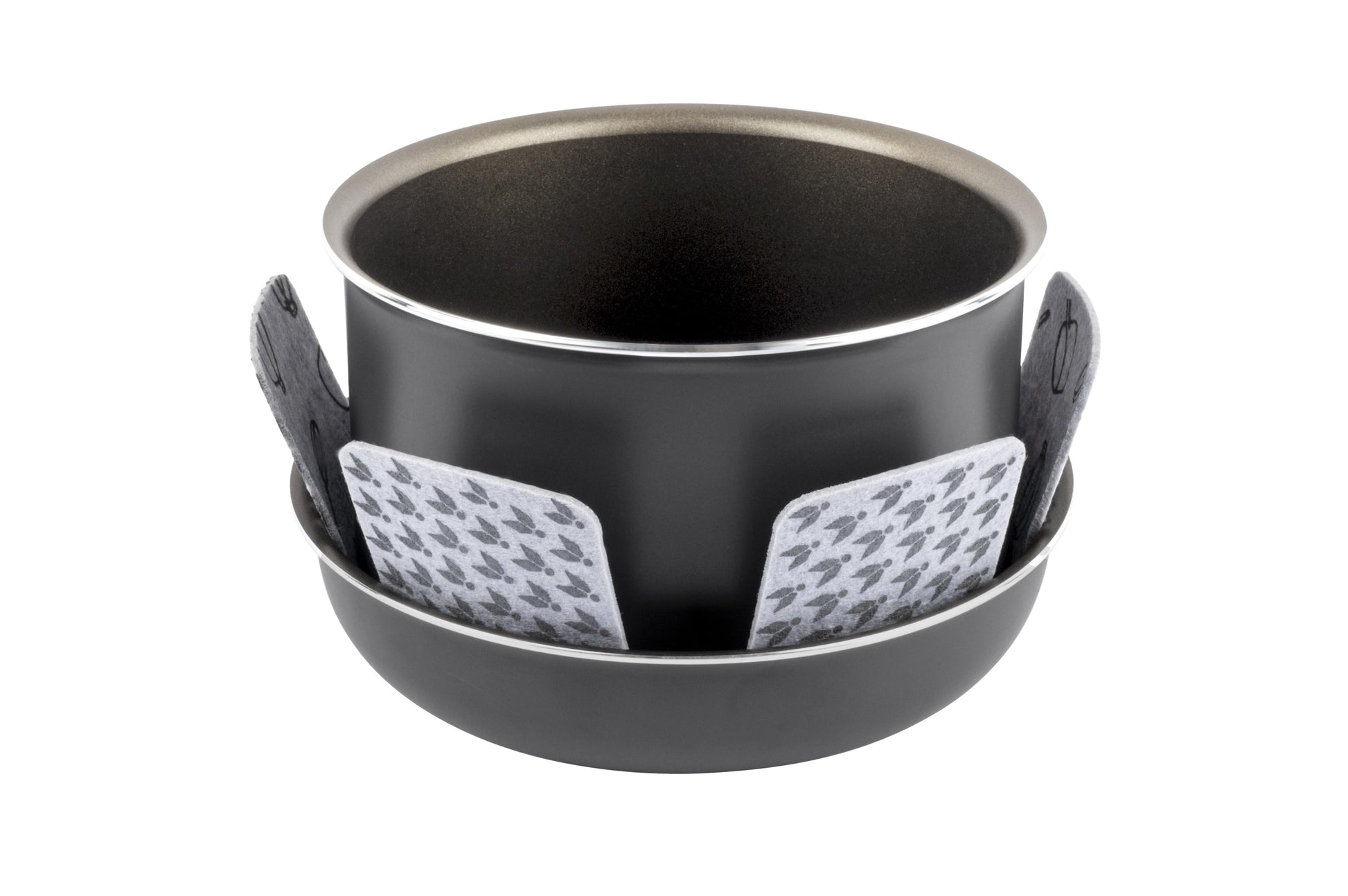 | Inhalt | 1x Topf gross, 2x Topf klein, 1x Pfanne, 2x Deckel, 2x Griffe, 1x Milchkochtopf, 1x Topfschutz, 1x Zurrgurt |
