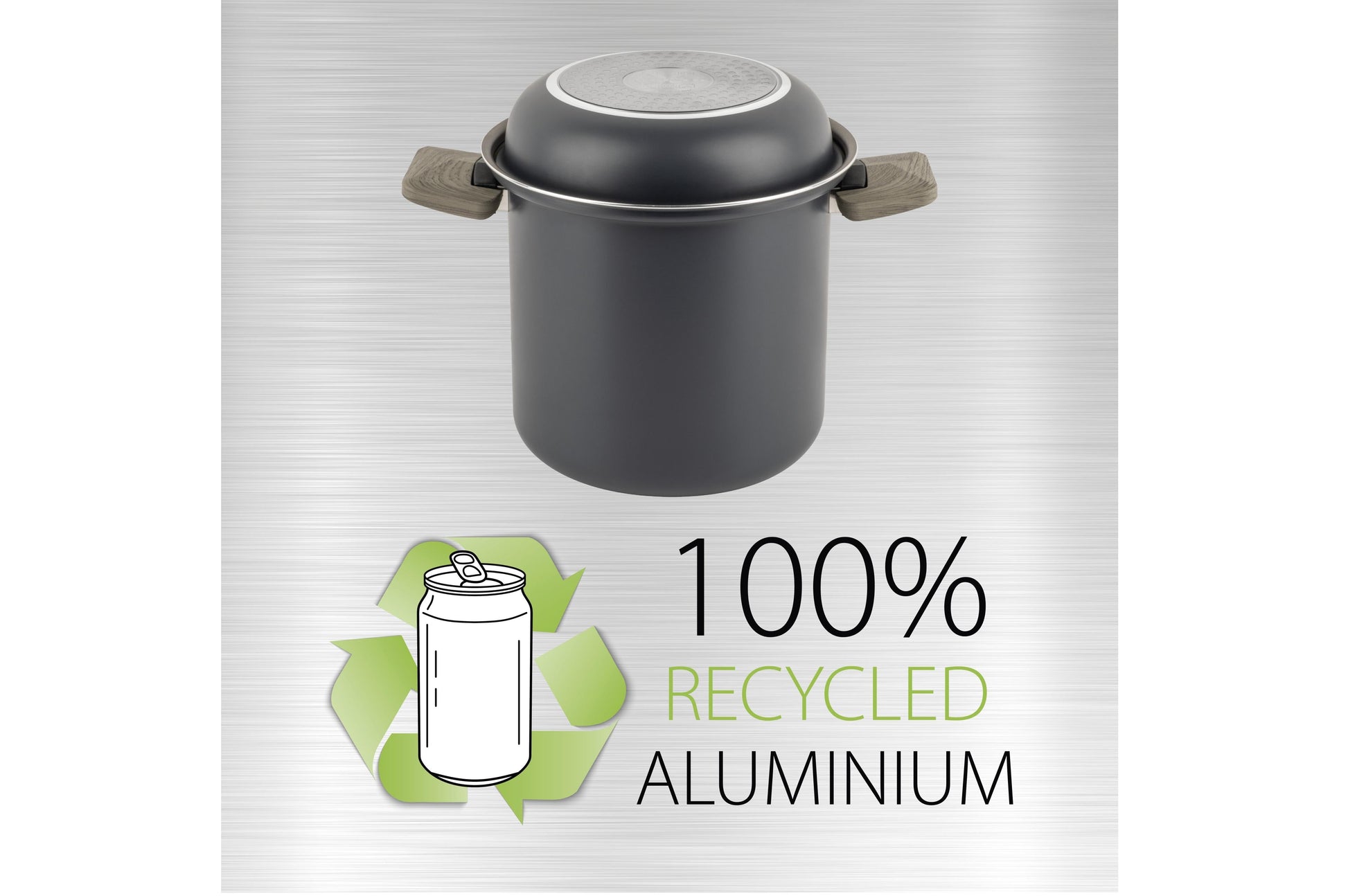 • Recyceltes Aluminium: Umweltfreundlich und für alle Herdarten geeignet, inkl. Induktion