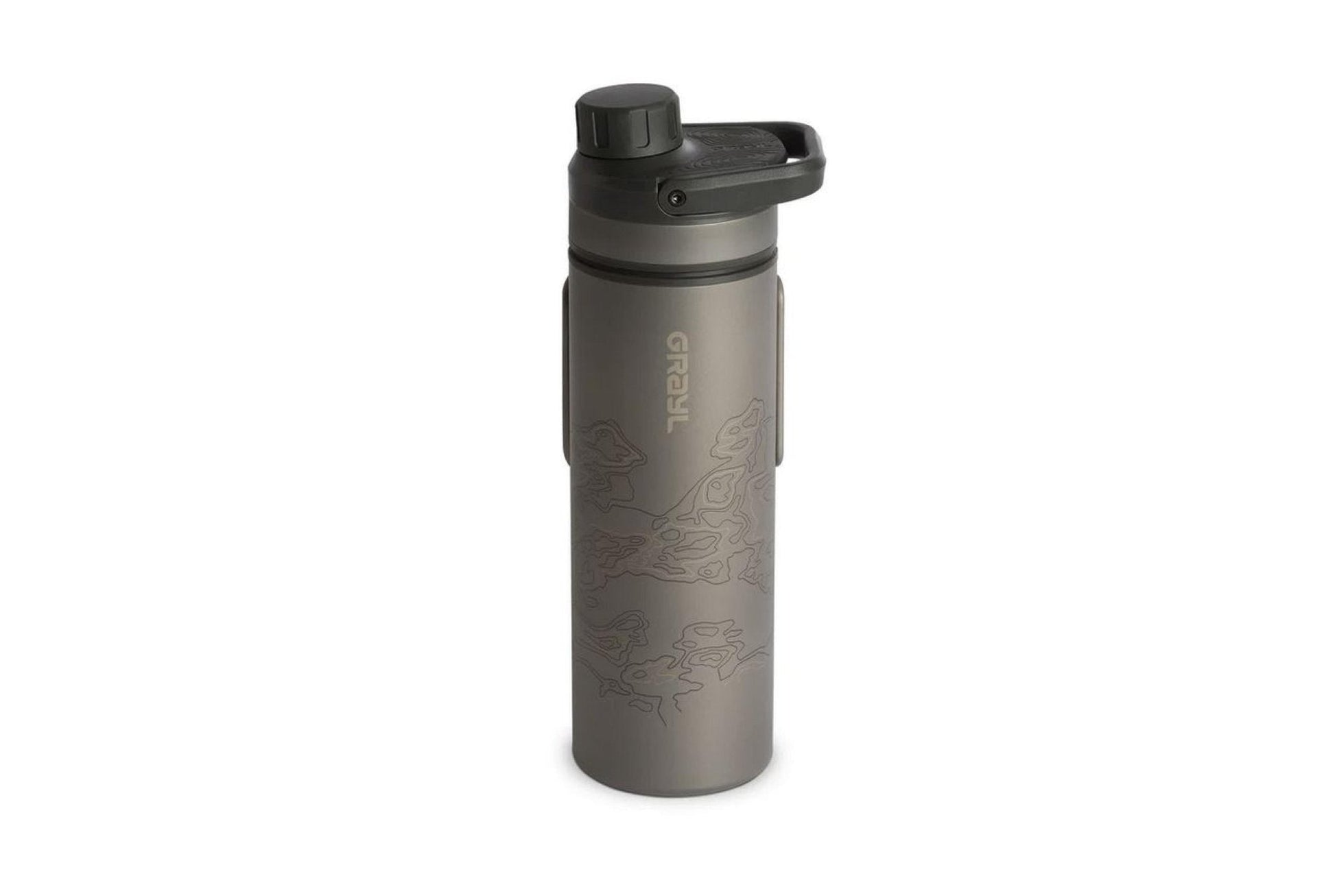 Die weltweit erste Filterflasche aus Titan, die Grayl UltraPress® Titanium Water Filter & Purifier Bottle, bietet ein unvergleichliches Verhältnis von Stärke zu Gewicht und hält den härtesten Bedingungen stand. Der Outer Ti Cup kann zum Erhitzen von Wasser und Kochen von Speisen verwendet werden. Die integrierte Filterkartusche mit ultra-pulverisierter Aktivkohle adsorbiert viele Chemikalien, Pestizide, Herbizide, Schwermetalle, Aromen und Gerüche. Die Kartusche hat eine Lebensdauer von 300 Druckvorgängen (150 l) und sollte nach drei Jahren ersetzt werden.