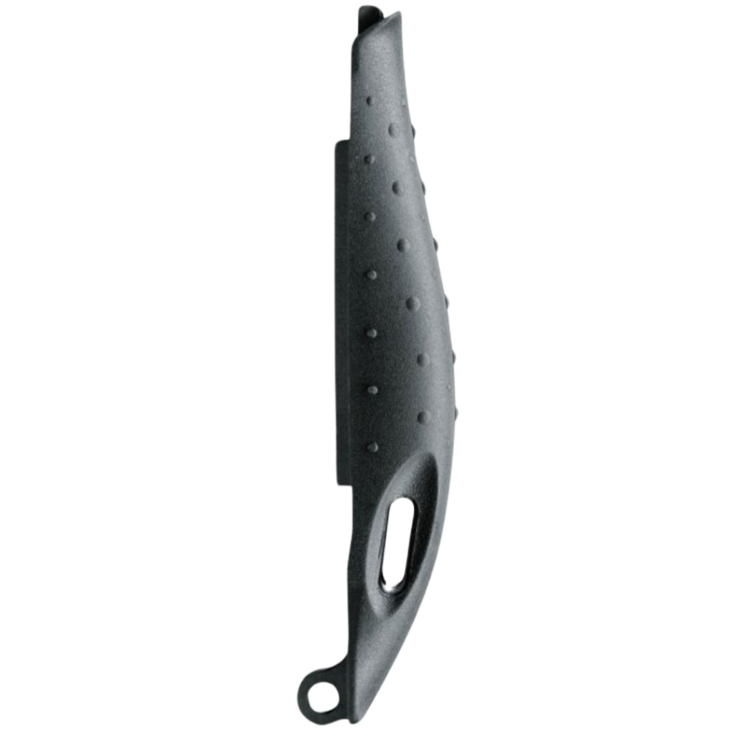 Die markante Spearpoint-Klinge aus 440 Stainless Steel ist schwarz beschichtet und aufgrund ihrer wuchtigen Ausführung in Verbindung mit der außergewöhnlichen Klingenstärke und der Recurve Form des Klingenrückens ein echter Eyecatcher. Die Riffelung des Klingenrückens wird auf der Beschalung weiter geführt und bietet dem führenden Daumen somit sicheren Halt. Wie auch bei der P99 Pistole ist der Griffrücken des P99 Knife austauschbar und lässt sich somit an die Handgröße des Anwenders anpassen.
